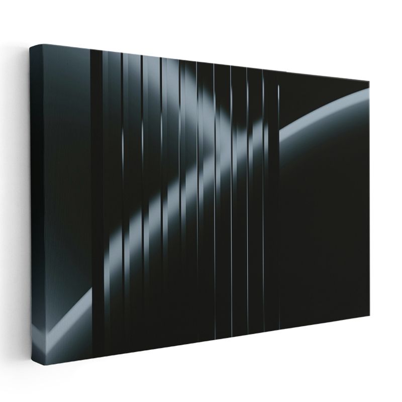 Minimalist Çizgi - Siyah Üzeri Gri Geometrik Yapı Kanvas Tablo