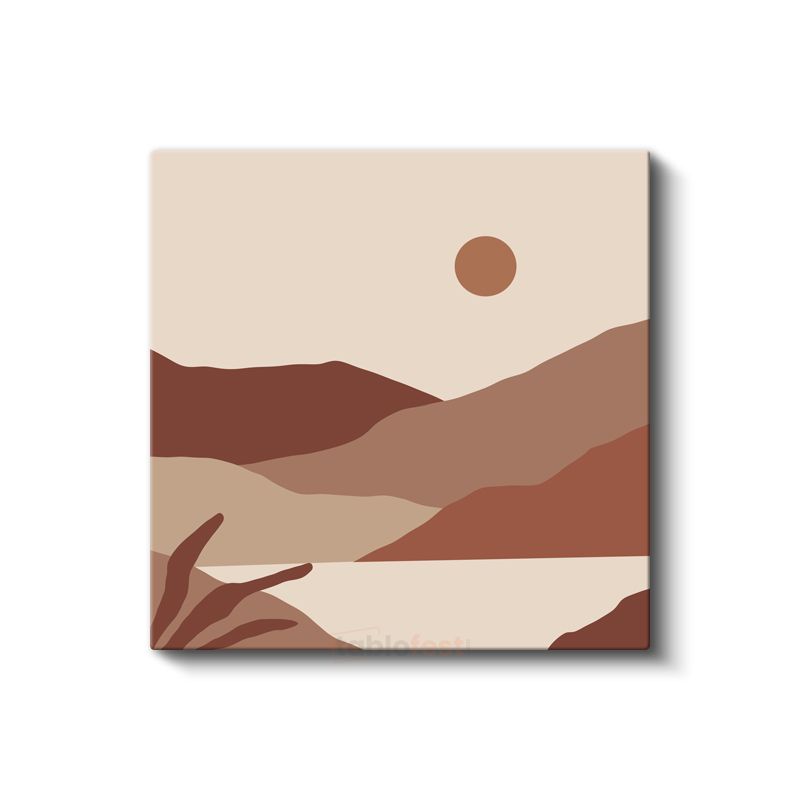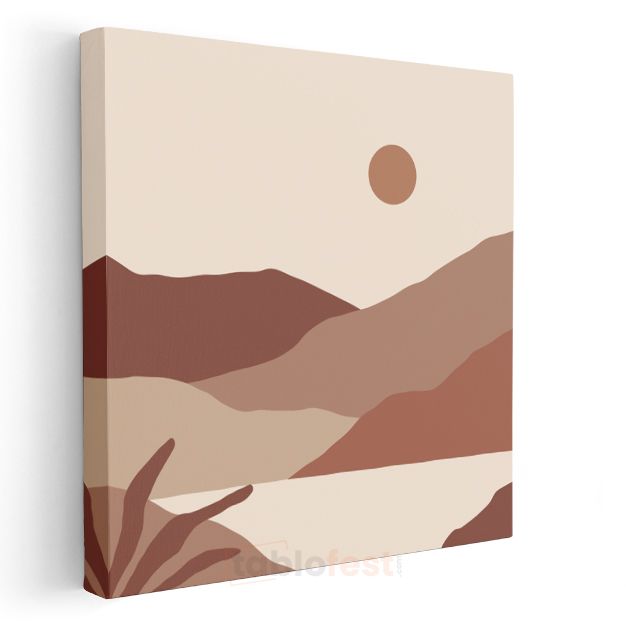 Minimalist Dağ Silueti - Toprak Tonları Soyut Manzara Kanvas Tablo