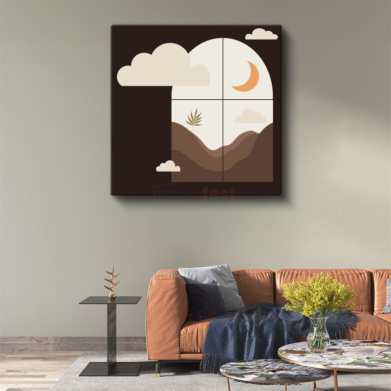 Minimalist Gece - Geometrik Ay ve Dağlar Kanvas Tablo