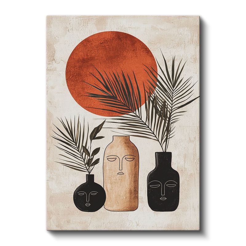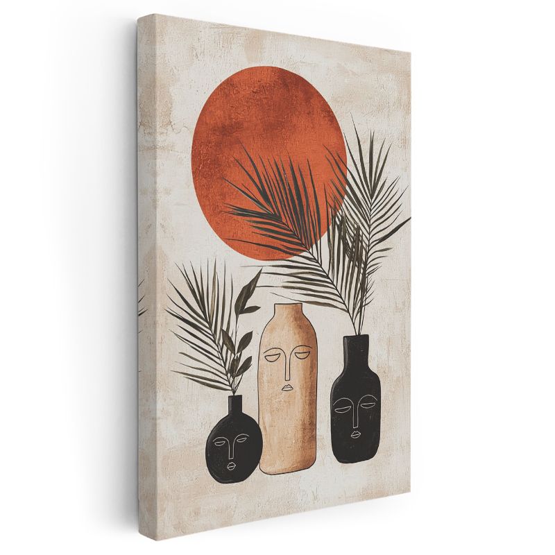 Minimalist Güneş - Geometrik Vazolar ve Yapraklar Kanvas Tablo