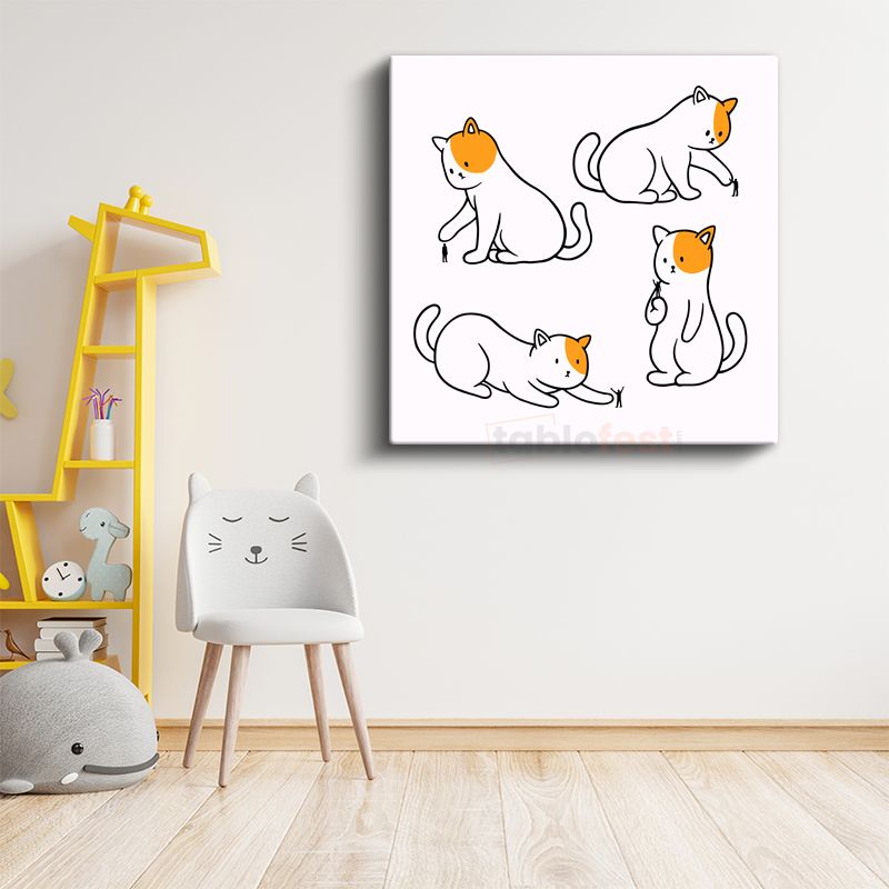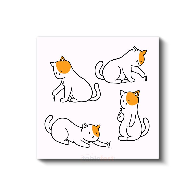Minimalist Kediler - Turuncu Benekli Dostlar Kanvas Tablo