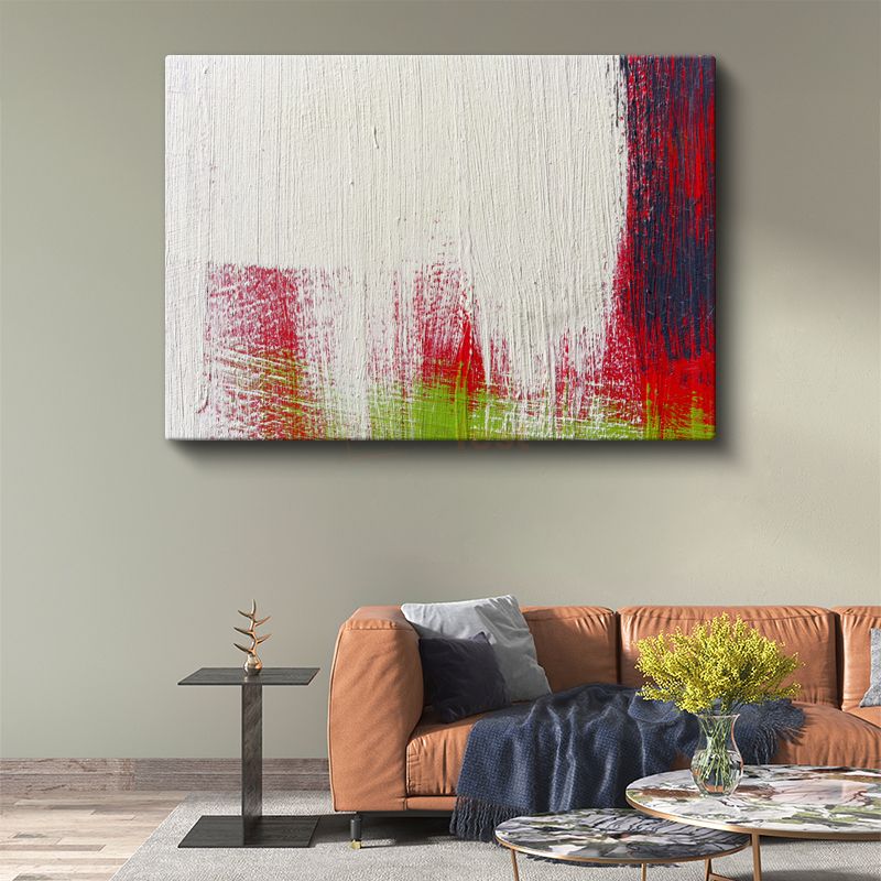 Minimalist Kontrast - Kırmızı Yeşil Fırça Darbeleri Kanvas Tablo