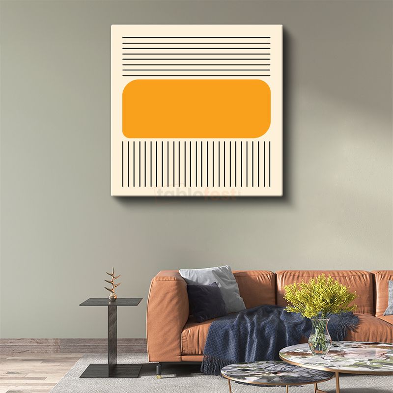 Minimalist Kontrast - Turuncu Blok ve Çizgi Kompozisyonlu Kanvas Tablo