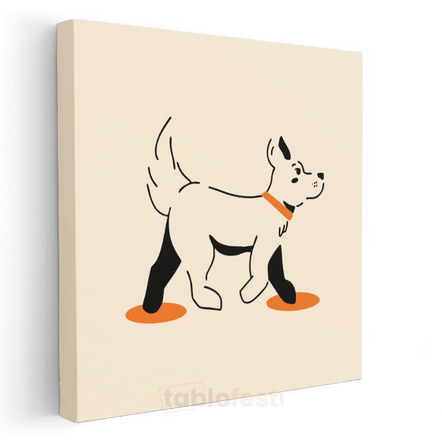 Minimalist Köpek - Turuncu Patili Dostumuz Kanvas Tablo