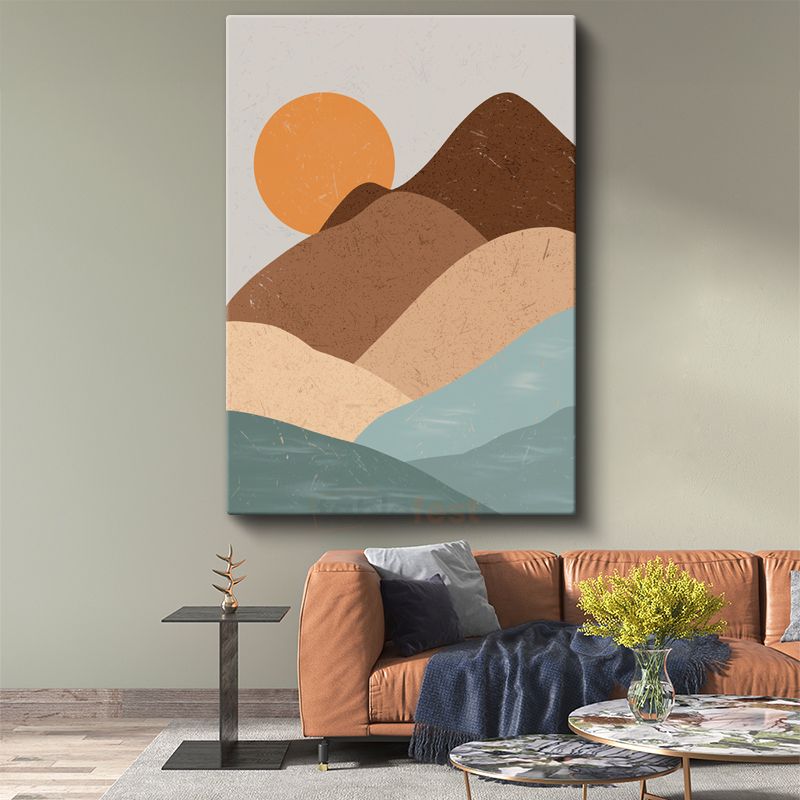 Minimalist Manzara - Soyut Tepeler ve Güneş Kompozisyonu Kanvas Tablo