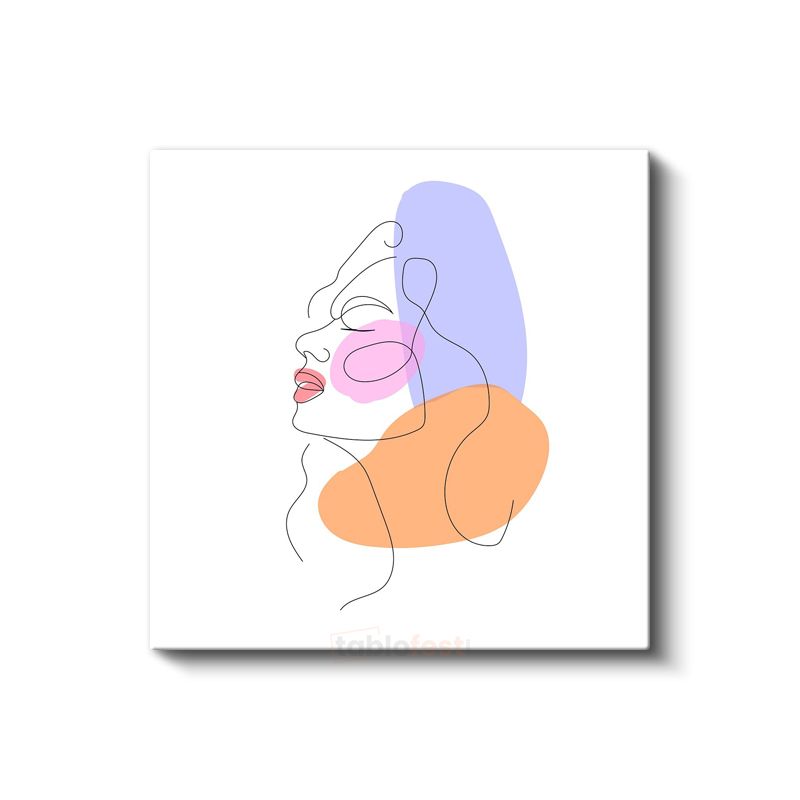Minimalist Portre - Tek Çizgi Tekniği Renkli Lekeler Kanvas Tablo