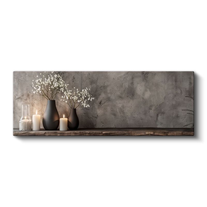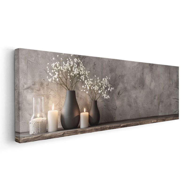 Minimalist Vazo Düzenlemesi - Beyaz Çiçekler ve Mumlarla Huzur Kanvas Tablo