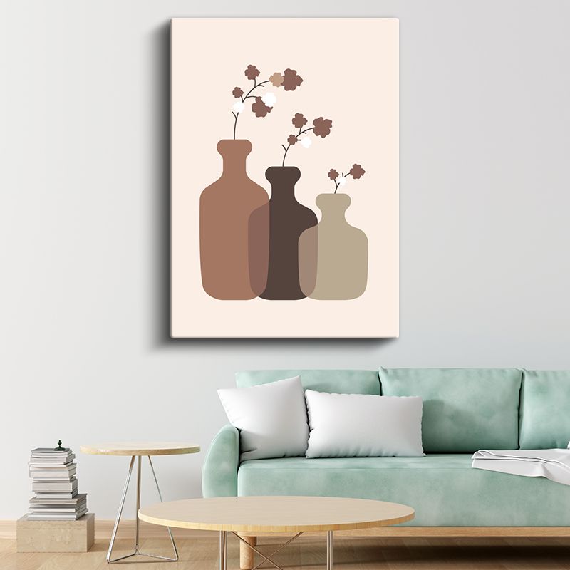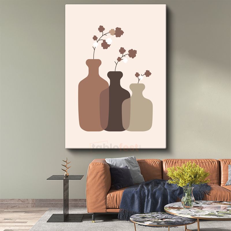 Minimalist Vazolar - Kahverengi Tonları Stilize Çizim Kanvas Tablo