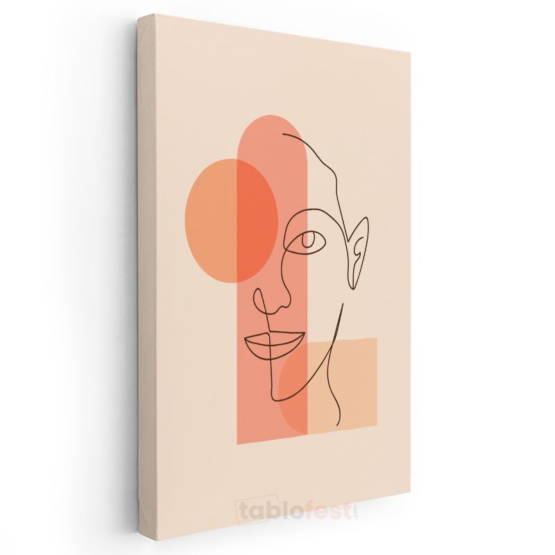 Minimalist Yüz Çizgisi - Geometrik Şekiller ve Sıcak Tonlar Kanvas Tablo
