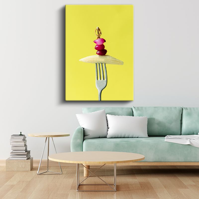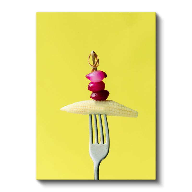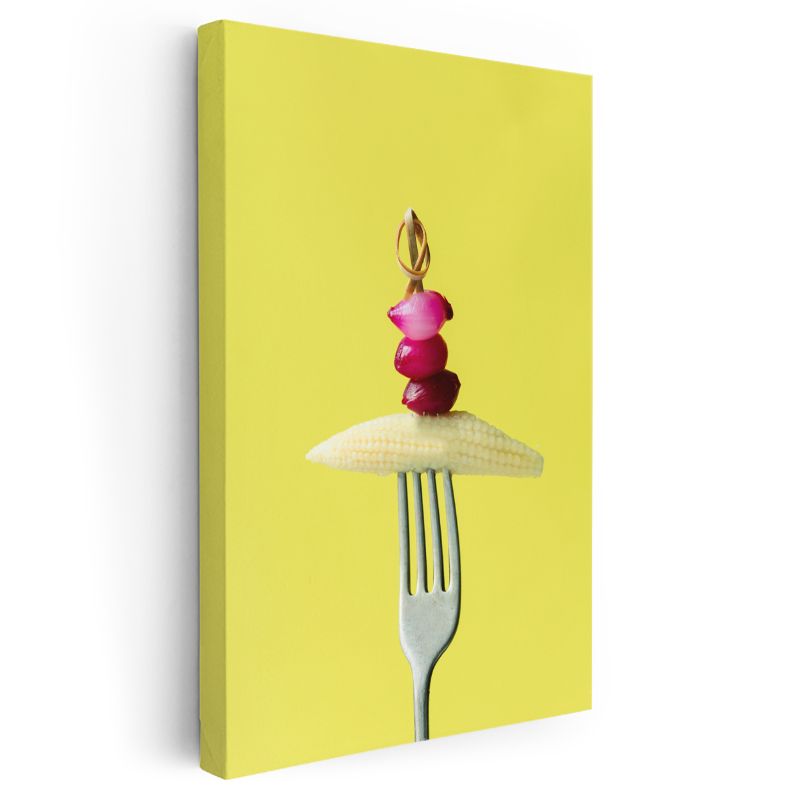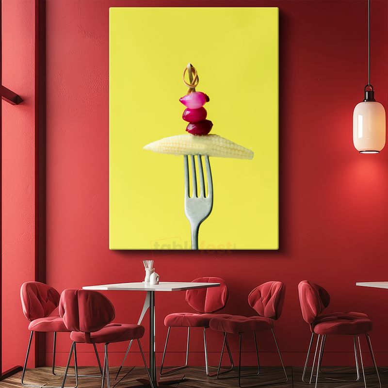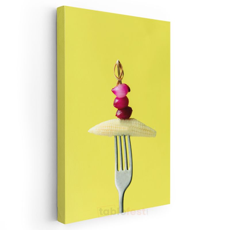 Mısır ve Turp - Çatalla Sunulan Renkli Kontrast Kanvas Tablo