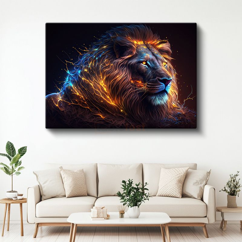Mistik Aslan - Ateş ve Buz Efektli Yele Detaylı Kanvas Tablo