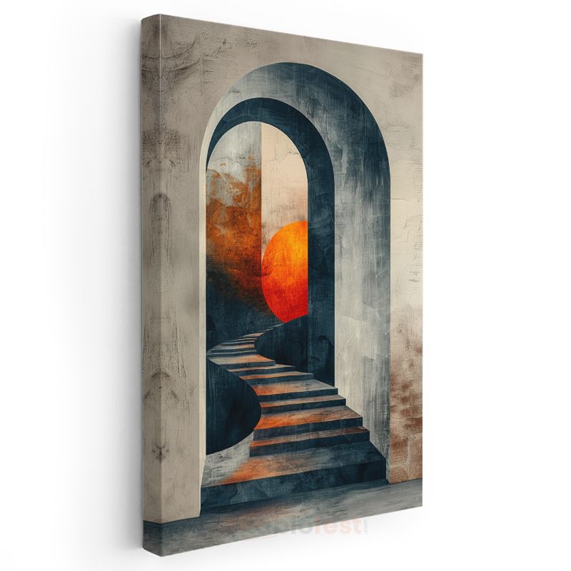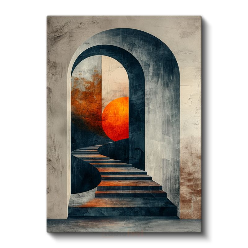 Mistik Geçit - Turuncu Güneş ve Merdivenler Kanvas Tablo