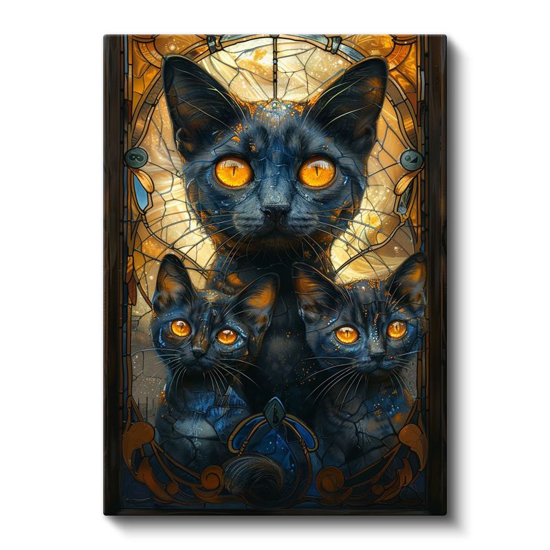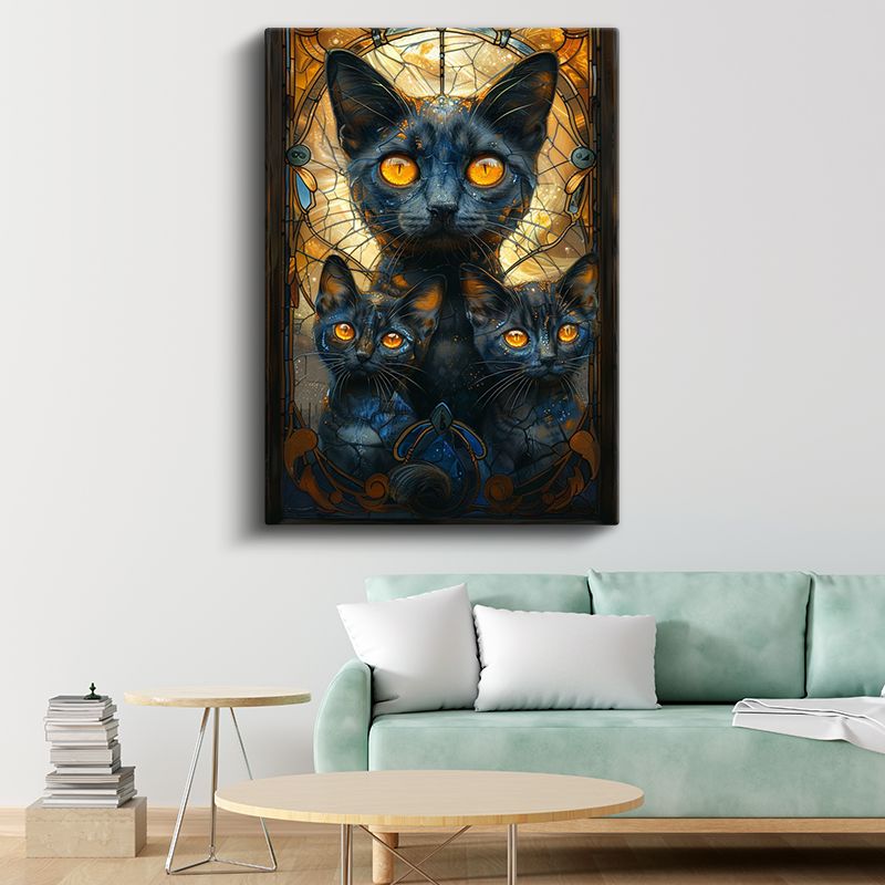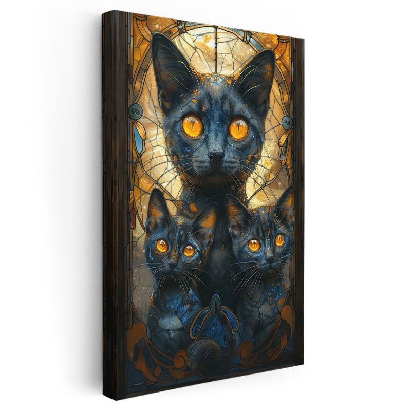 Mistik Kediler - Sarı Gözlü Üç Siyah Kedi Portresi Kanvas Tablo