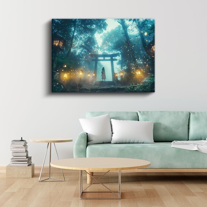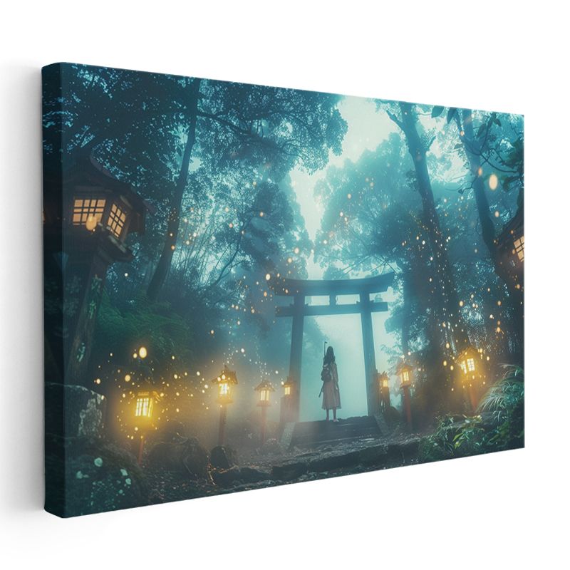 Mistik Tapınak - Altın Işıklar Anime Kanvas Tablo