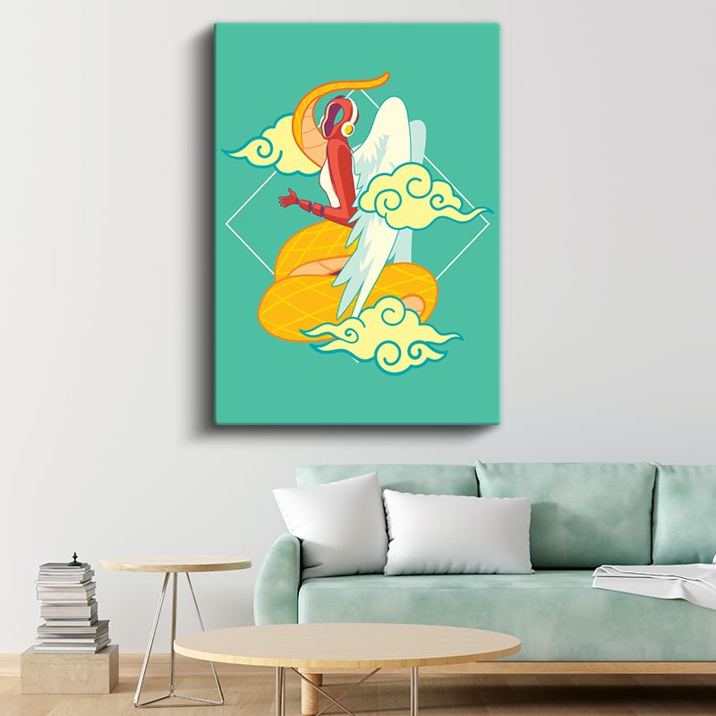Mitolojik Kahraman - Bulutlar Arasında Süzülen Figür Kanvas Tablo