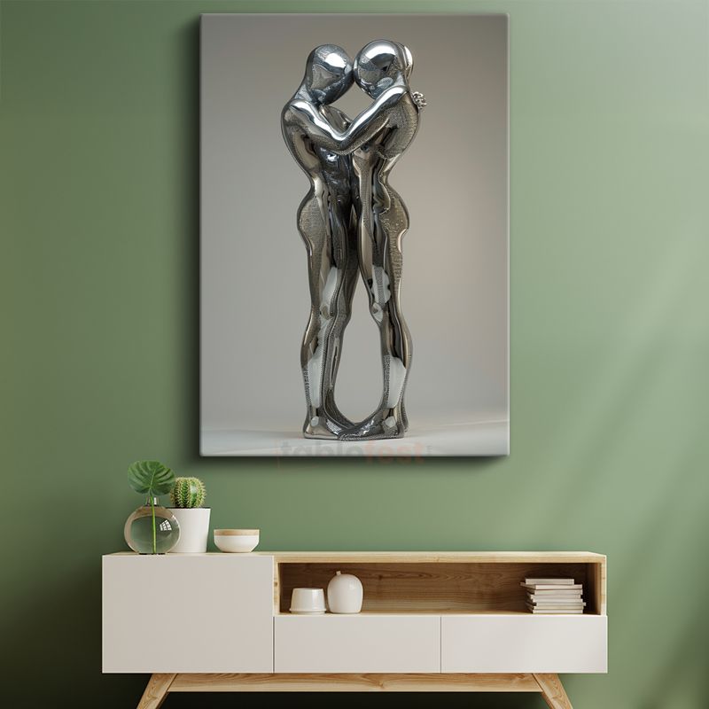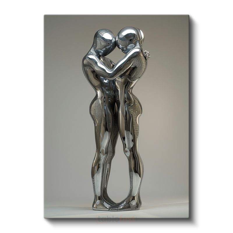 Modern Aşıklar - Gümüş Heykel Sanatı Kanvas Tablo