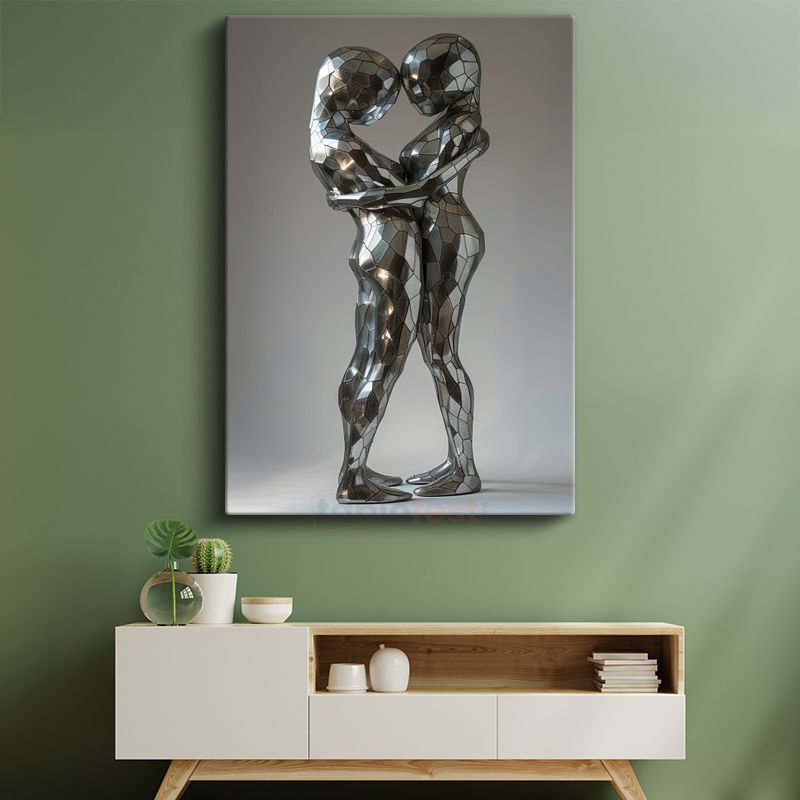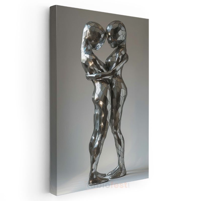 Modern Aşk - Metalik Kucaklaşan Figürler Kanvas Tablo