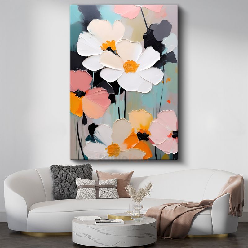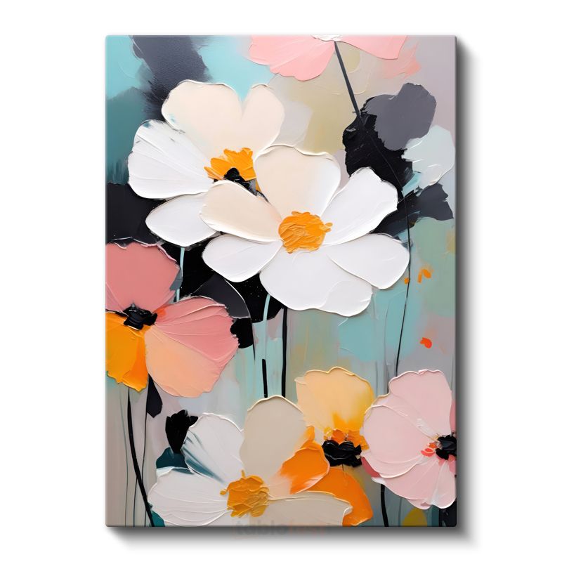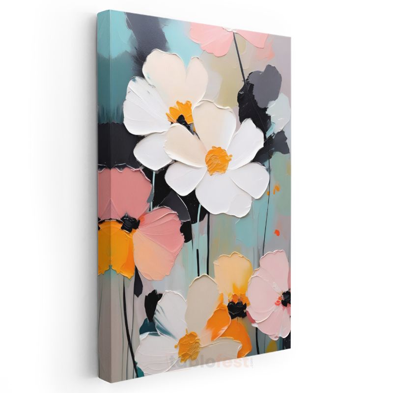 Modern Çiçek Buketi - Kalın Dokulu Pastel Renkli Kanvas Tablo