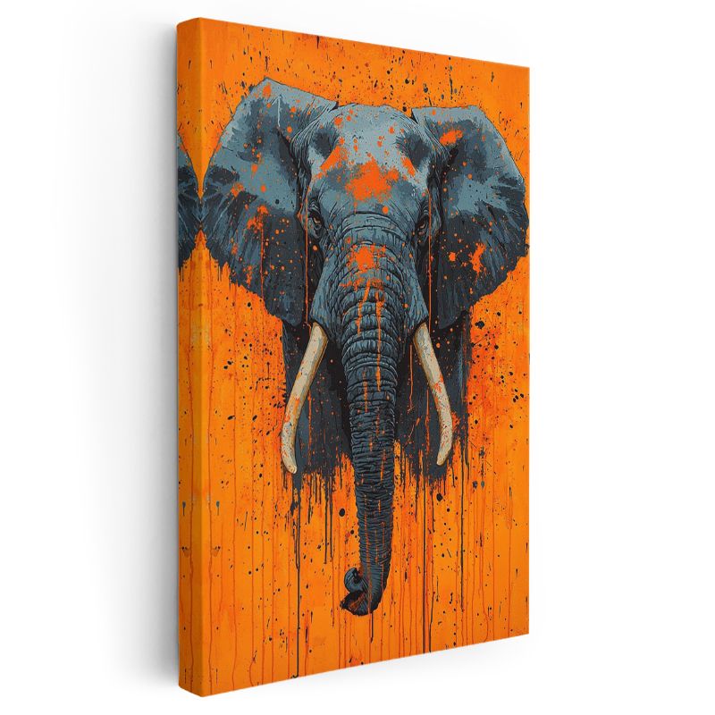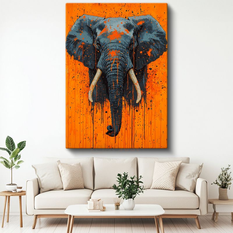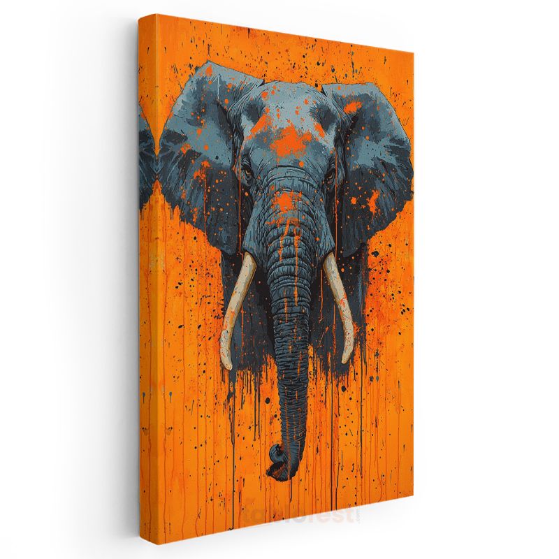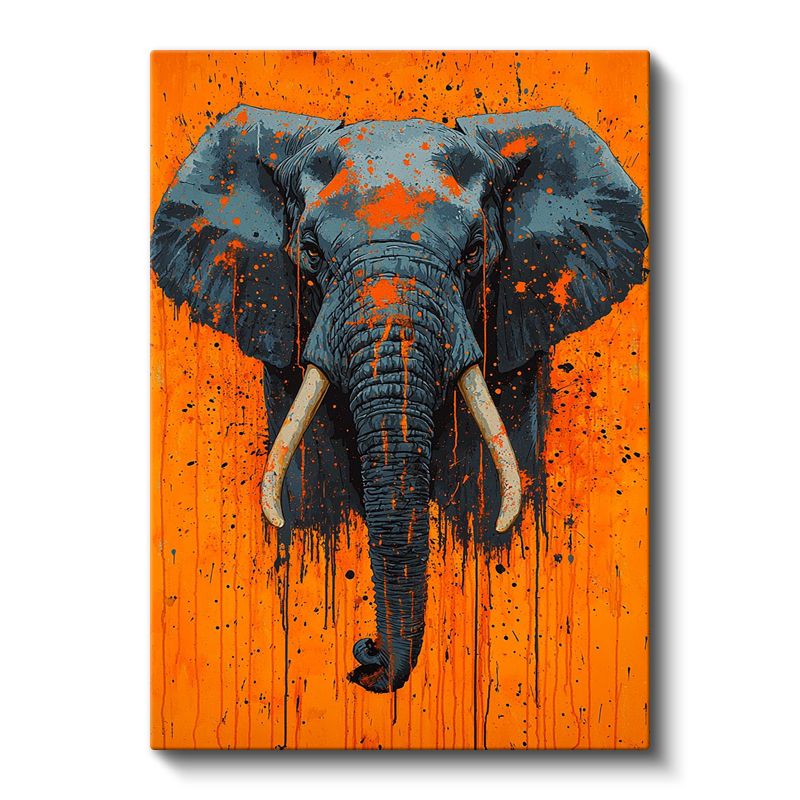 Modern Fil - Turuncu Zeminde Sıçrama Efektli Portre Kanvas Tablo