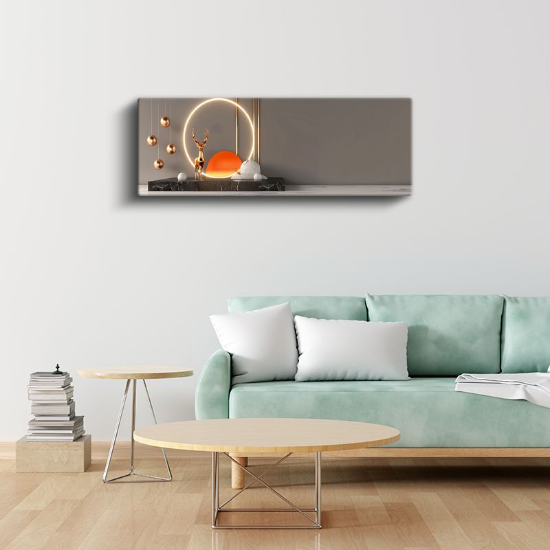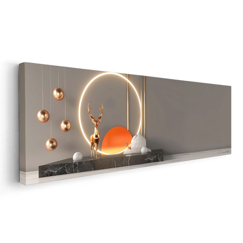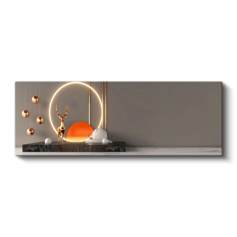Modern Geyik - Işıklı Çember İçinde Altın Heykel Kanvas Tablo