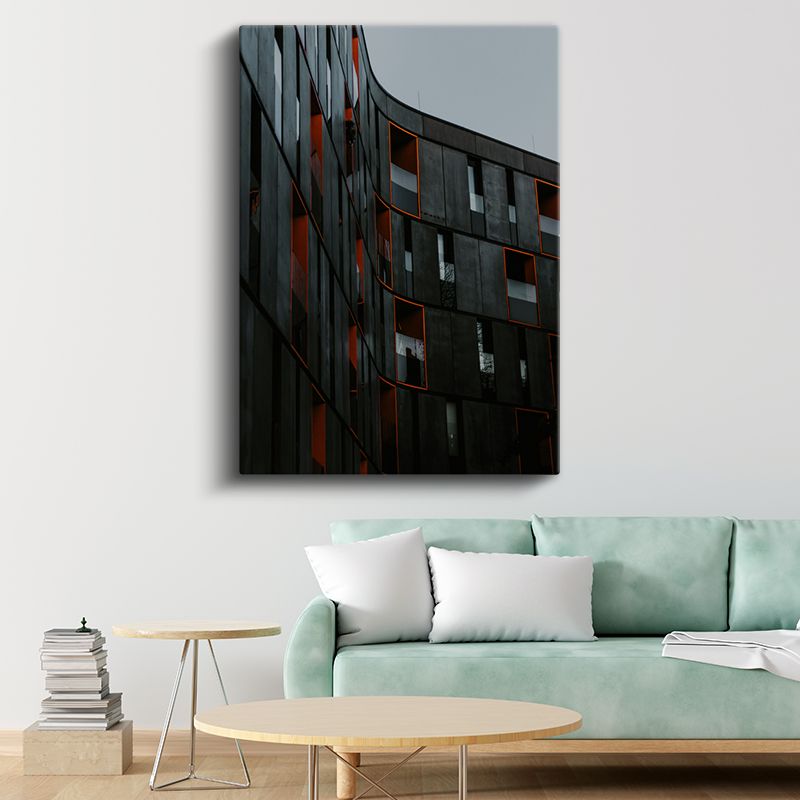 Modern Mimari - Turuncu Detaylı Şehir Silueti Kanvas Tablo