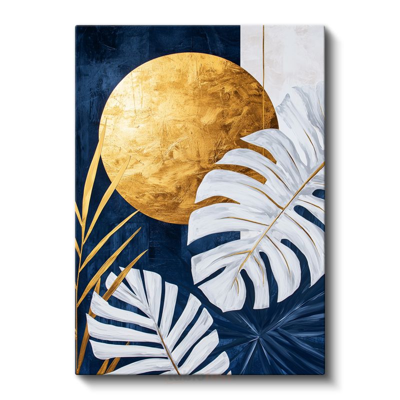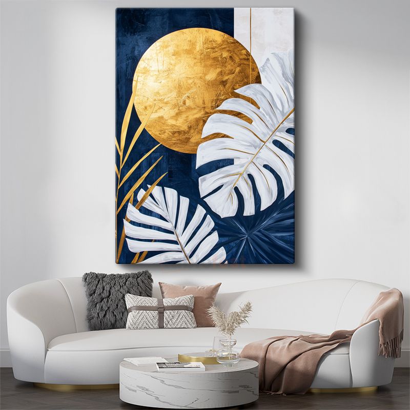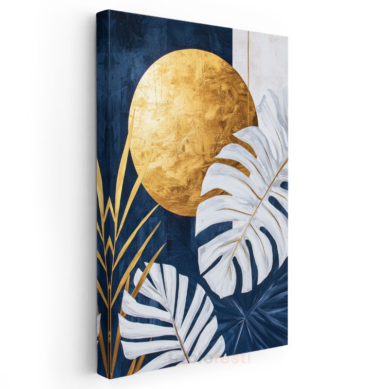Modern Palmiye Yaprakları - Lüks Altın Ay Detaylı Kanvas Tablo