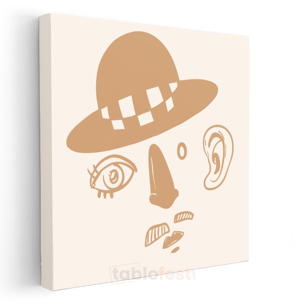 Modern Portre - Şapkalı Figür Çizimi Kanvas Tablo