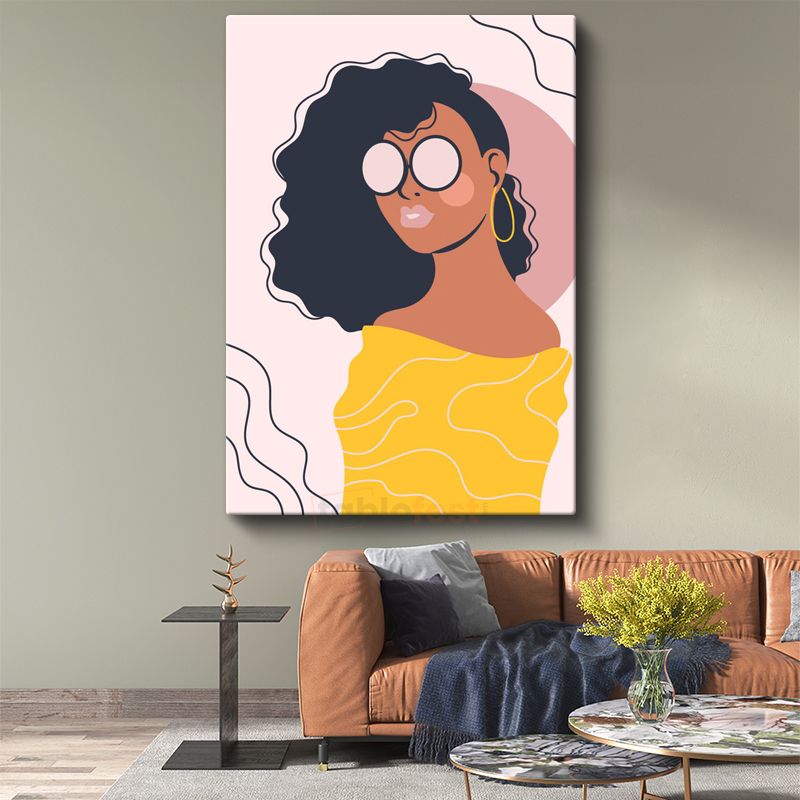 Modern Portre - Sarı Kıyafetli Figür Vektörel Kanvas Tablo