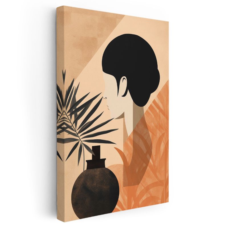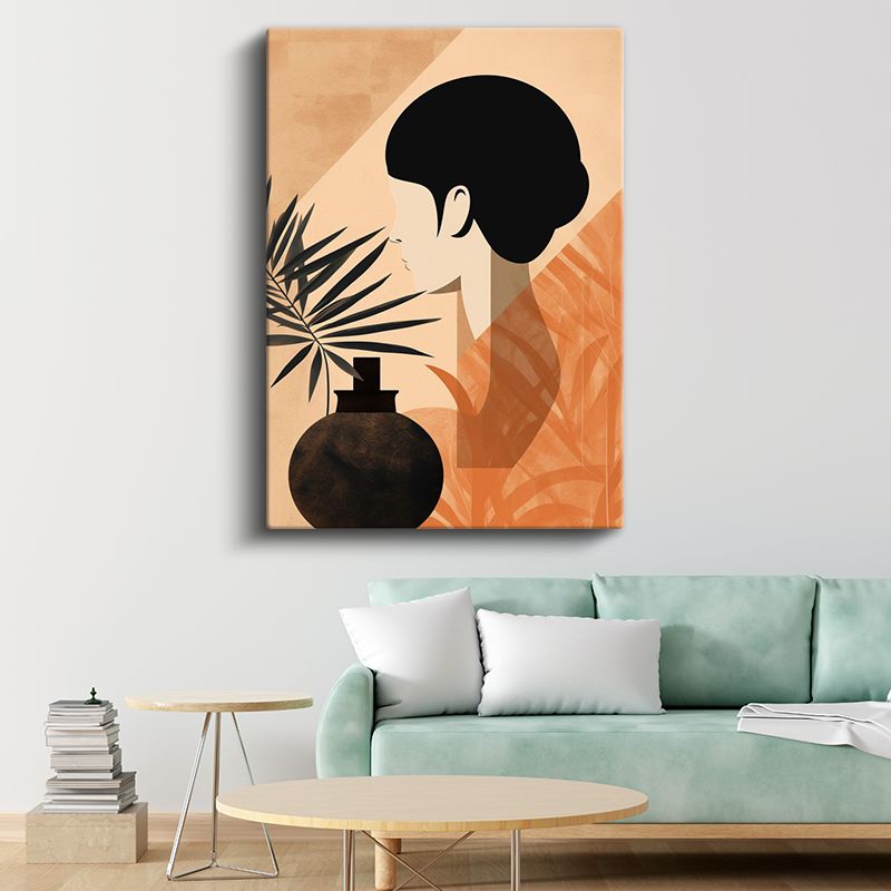 Modern Silüet - Minimalist Portre ve Vazo Kanvas Tablo