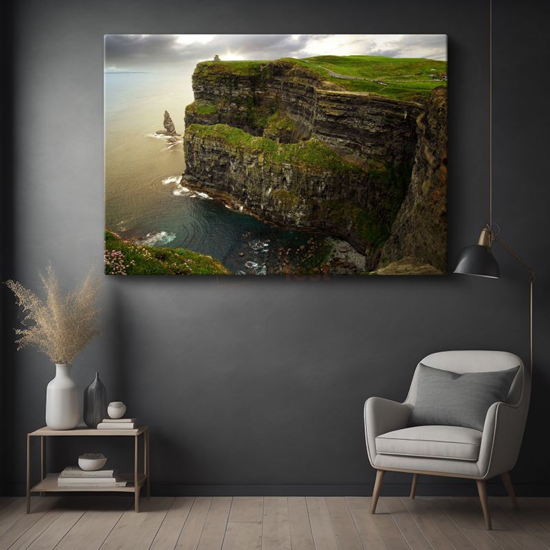 Moher Kayalıkları - Yeşil Tepeli Yüksek Falezler Kanvas Tablo