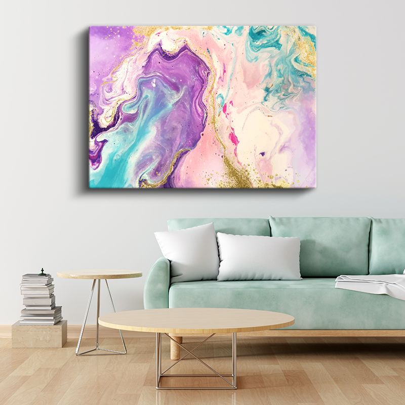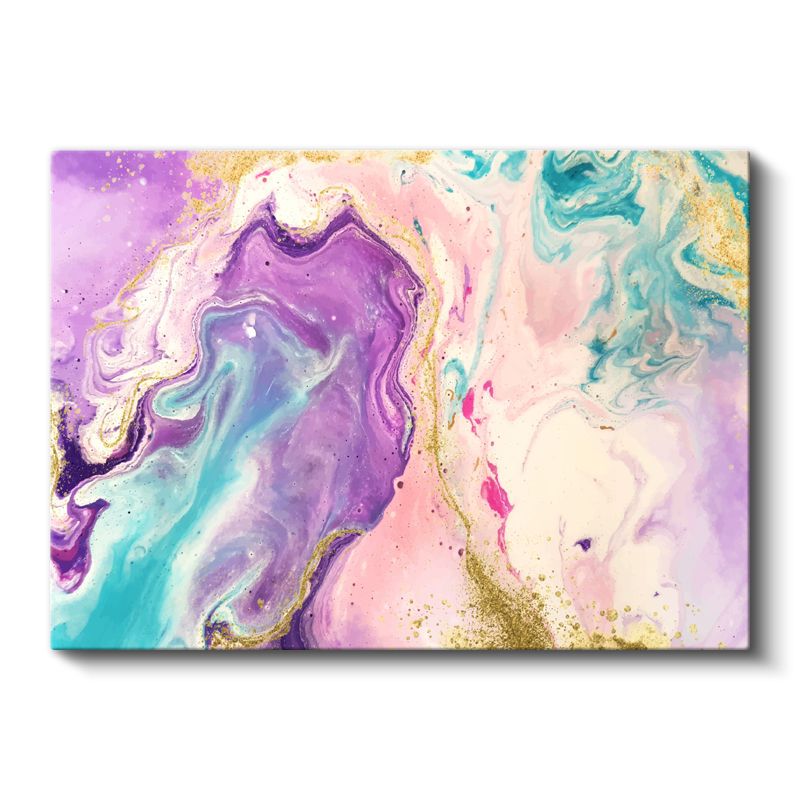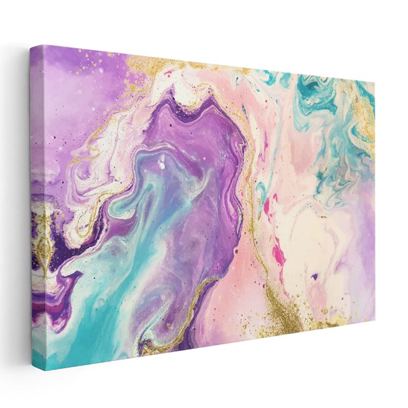 Mor Akış - Mermer Efektli Altın Detaylı Kanvas Tablo