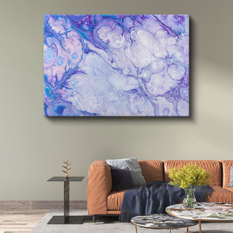 Mor Akışkan Desen - Mermer Efektli Soyut Kanvas Tablo