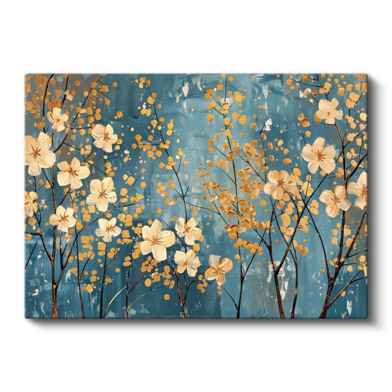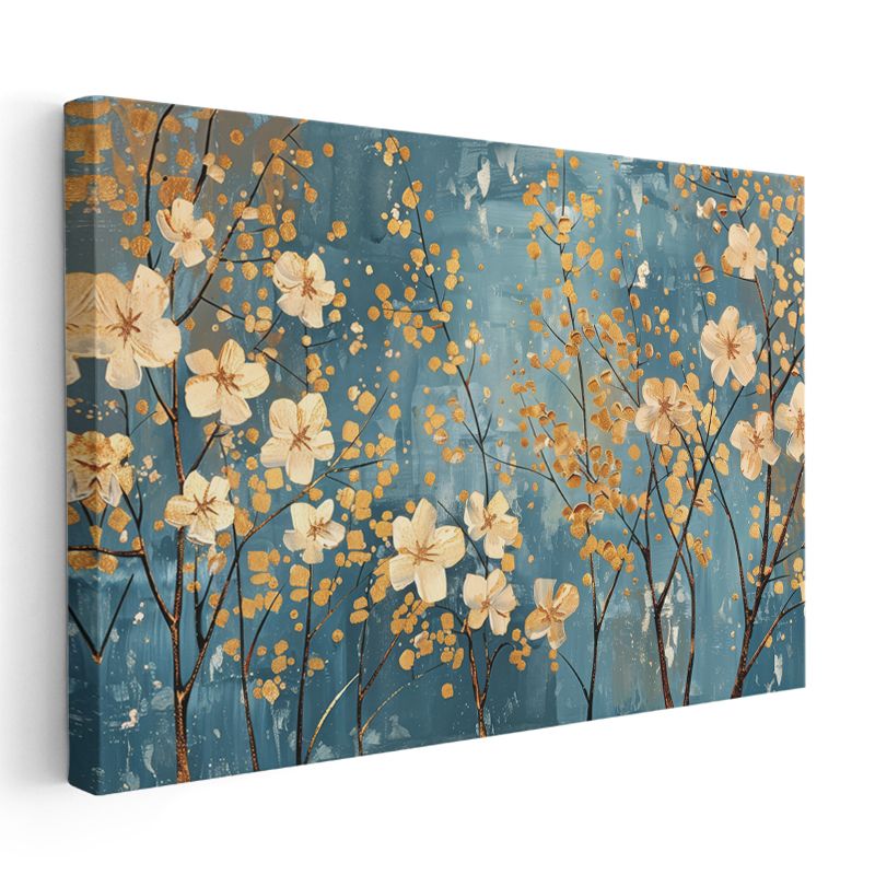 Mor Altın Çiçekler - Sulu Boya Efektli Zarif Tasarım Kanvas Tablo