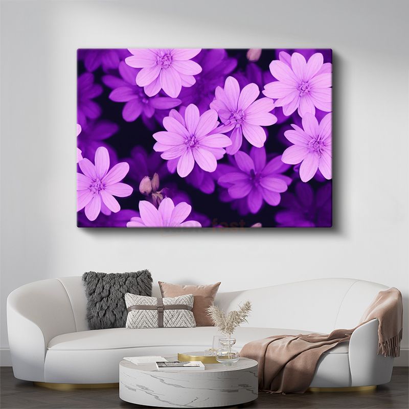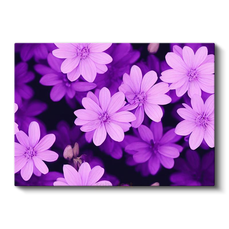 Mor Çiçek Bahçesi - Koyu Fonda Canlı Çiçek Portresi Kanvas Tablo