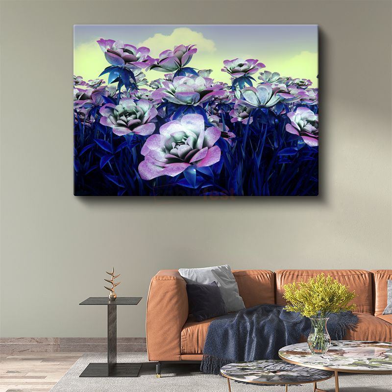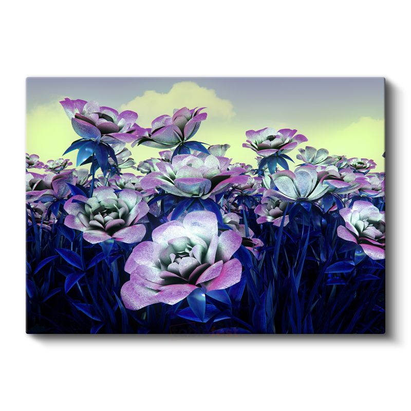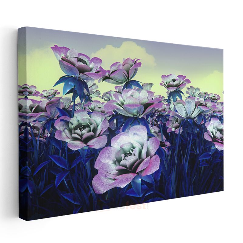 Mor Çiçekler - Dijital Bahçe Vektörel Kanvas Tablo