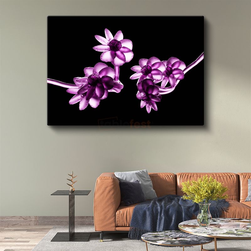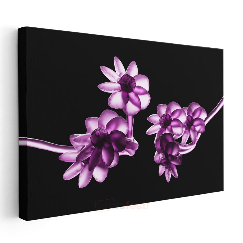 Mor Çiçekler - Dijital Flora Vektörel Kanvas Tablo