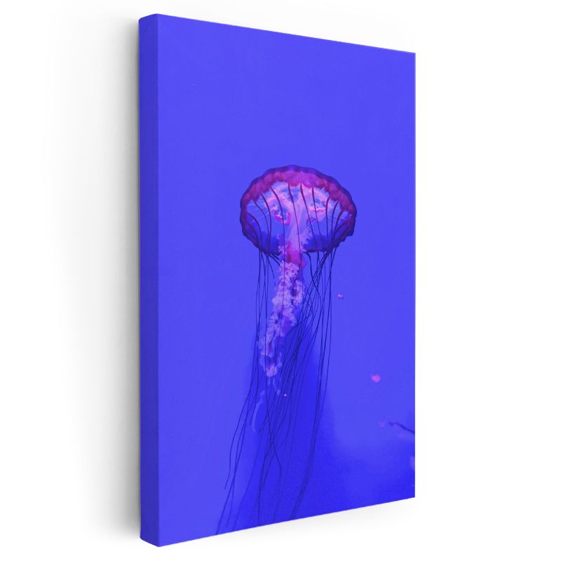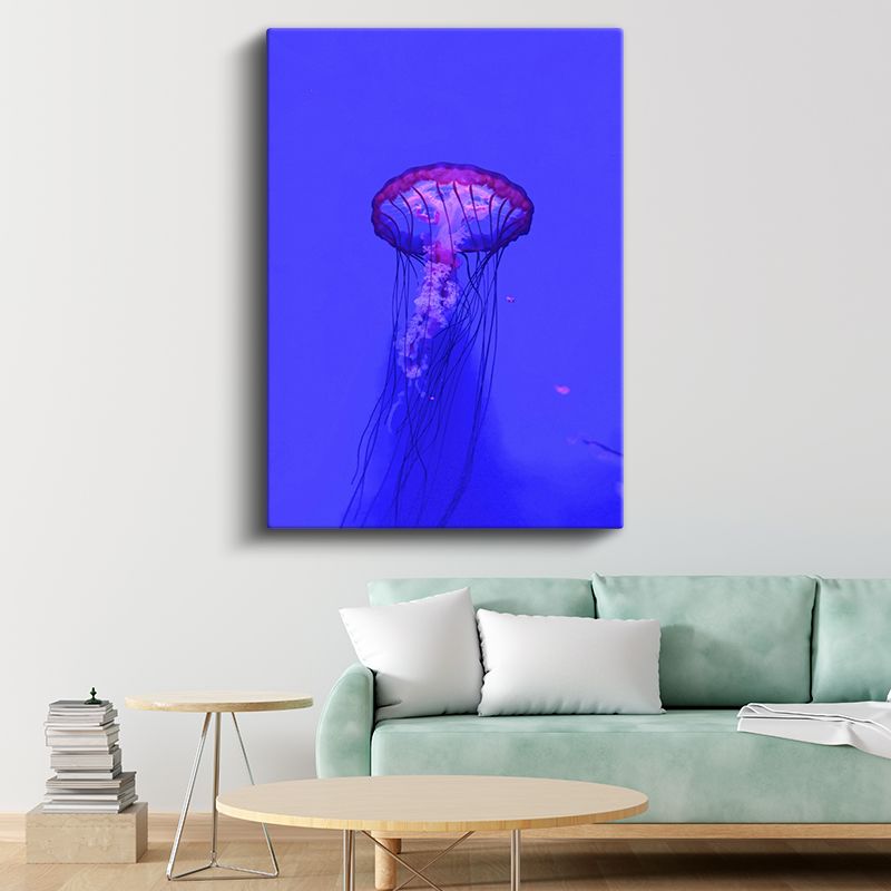 Mor Denizanası - Mavi Suda Dans Eden Şeffaf Güzellik Kanvas Tablo
