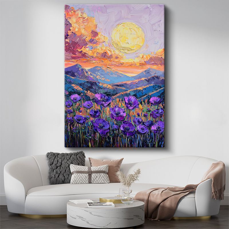 Mor Gelincik Vadisi - Empresyonist Gün Batımı Manzarası Kanvas Tablo