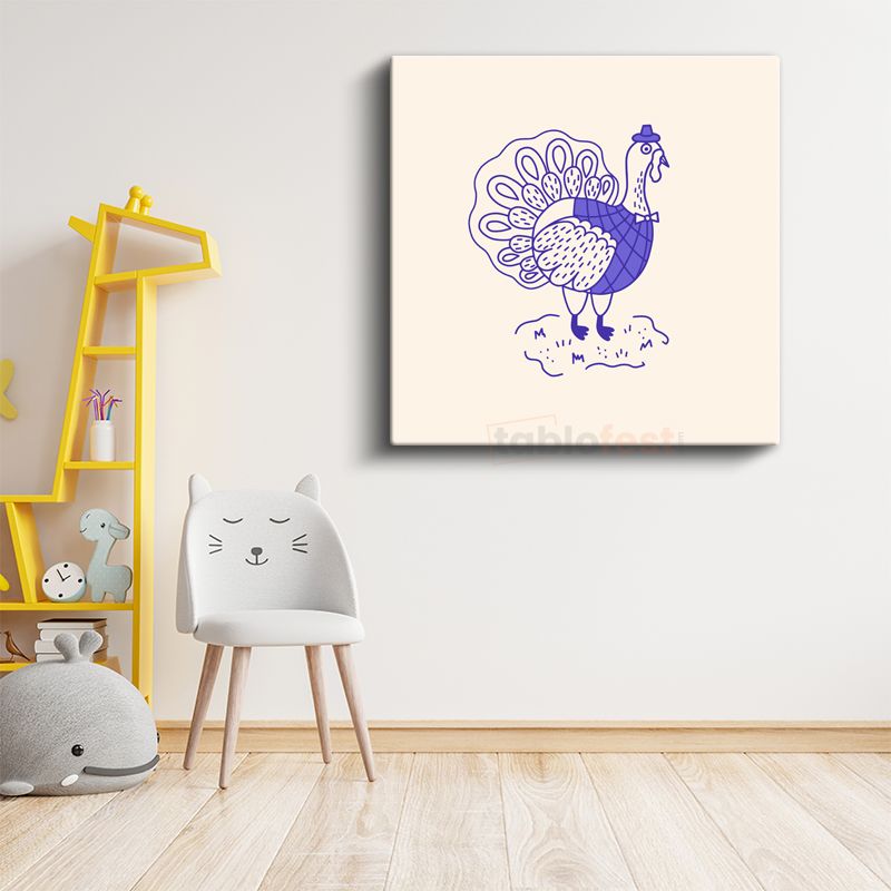 Mor Hindi - Şapkalı Çiftlik Hayvanı Kanvas Tablo