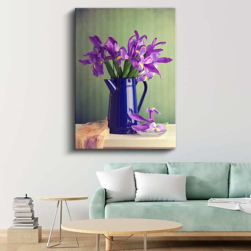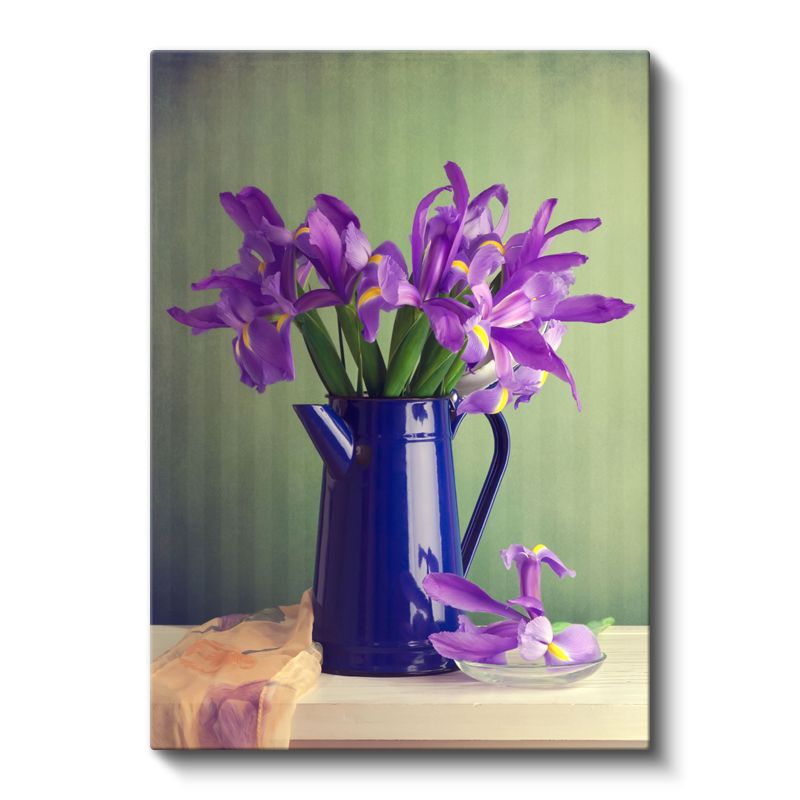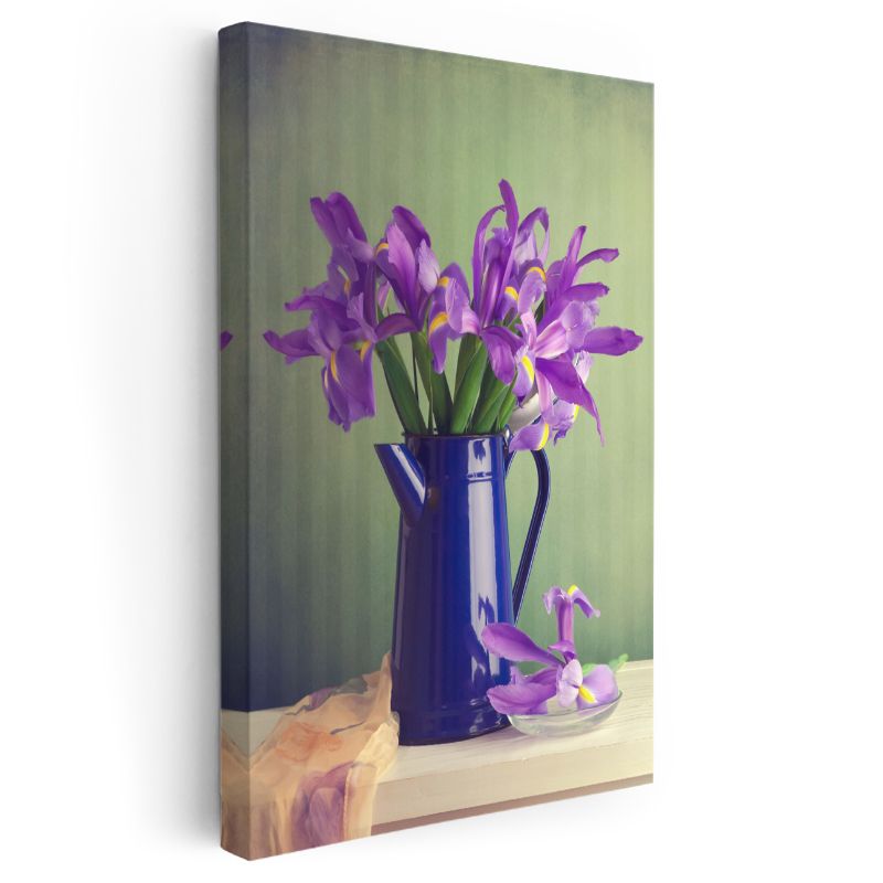 Mor İrisler - Mavi Vazoda Zarif Çiçek Aranjmanı Kanvas Tablo
