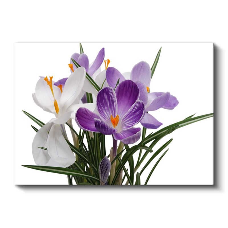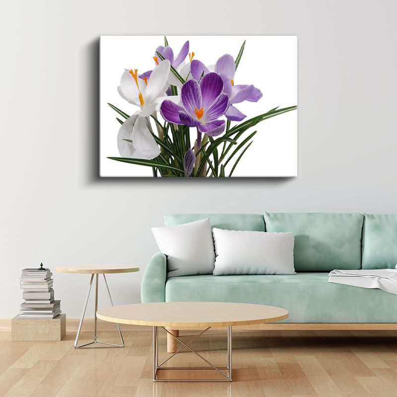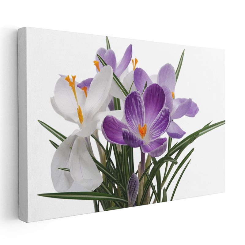 Mor Krokus - Beyaz Çiçeklerle Zarif Kontrast Kanvas Tablo