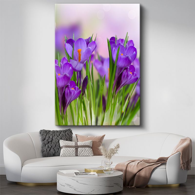 Mor Krokus Çiçekleri - Bahar Esintisi Kanvas Tablo