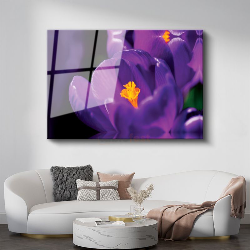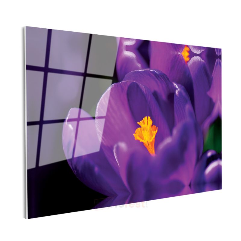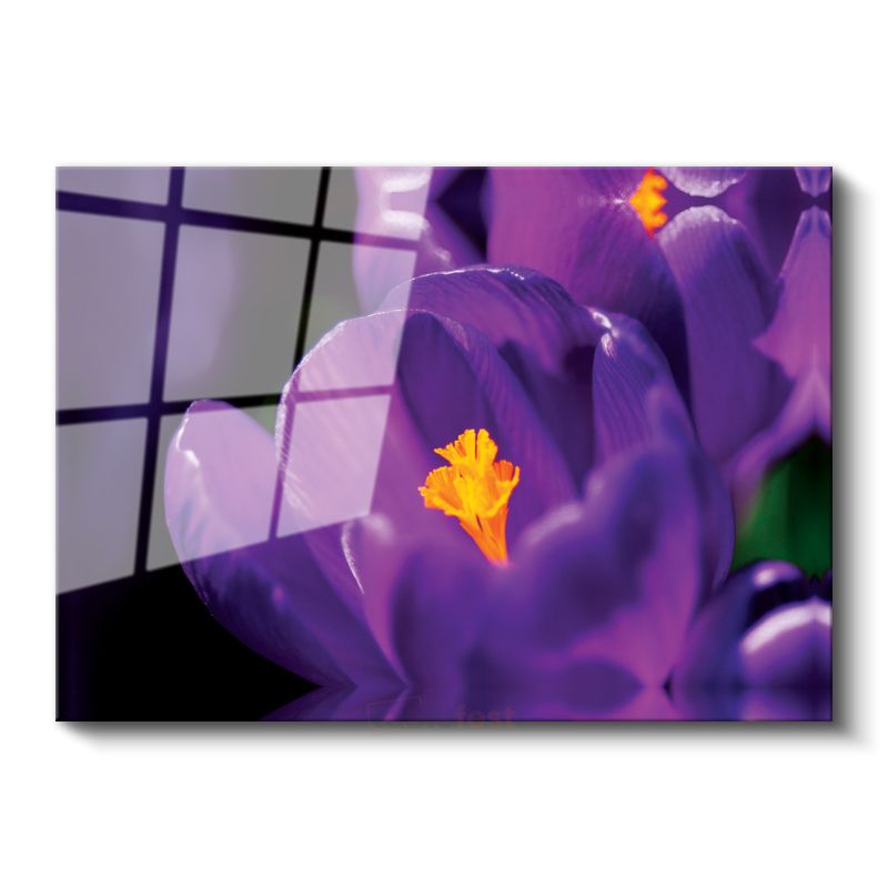 Mor Krokus - Sarı Tozlu Polen Detaylı Cam Tablo