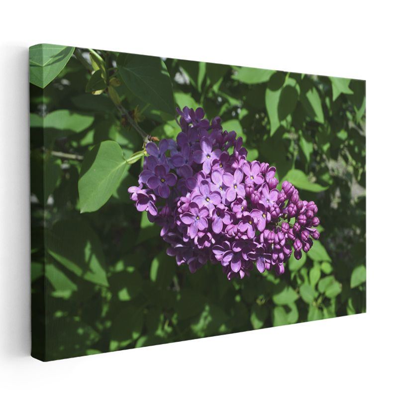 Mor Leylak - Yeşil Yapraklı Çiçek Demeti Kanvas Tablo