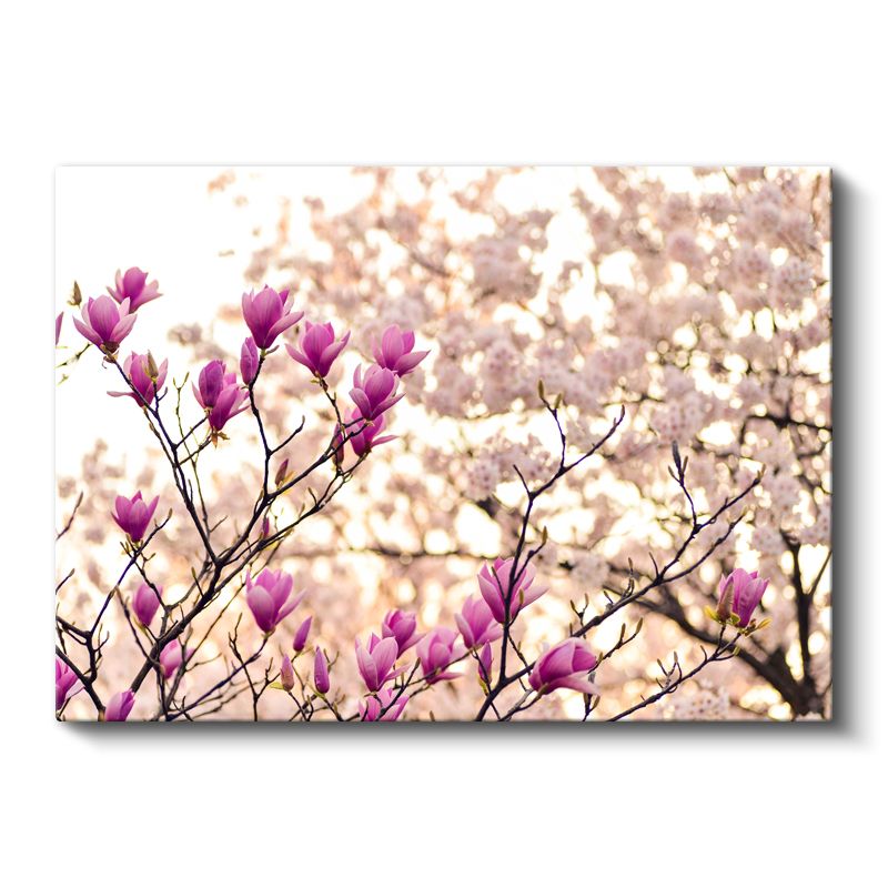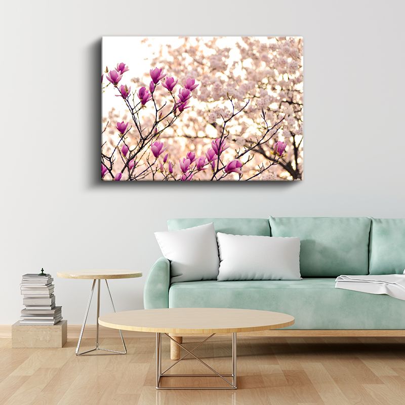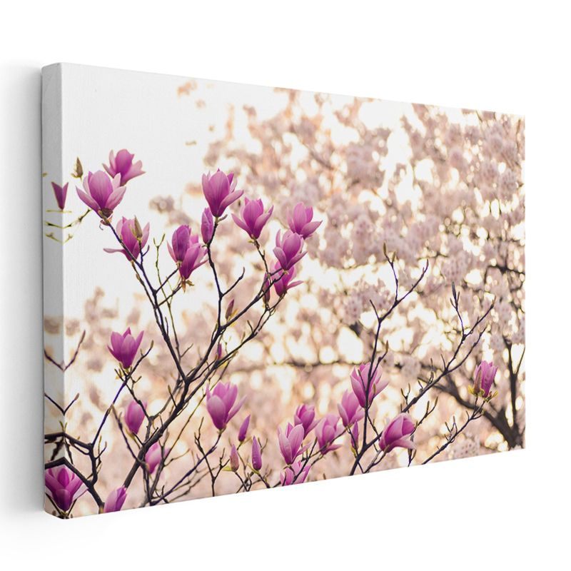 Mor Manolya - Bahar Dallarında Göz Alıcı Çiçekler Kanvas Tablo