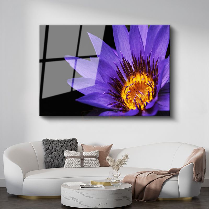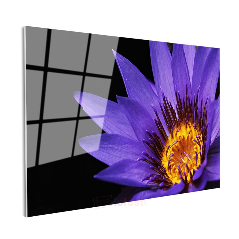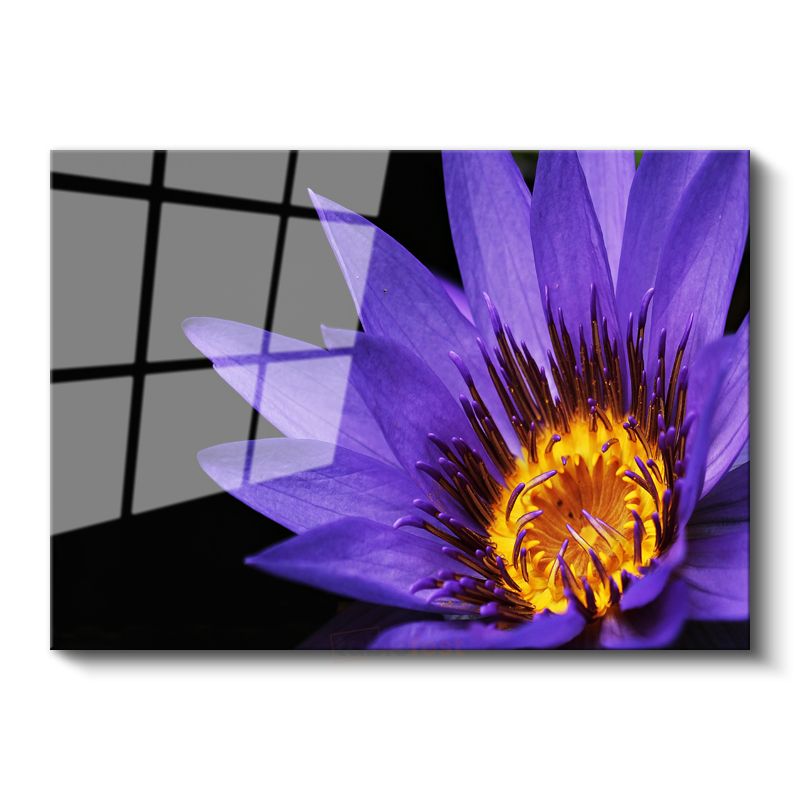 Mor Nilüfer - Altın Sarısı Merkezli Egzotik Çiçek Cam Tablo