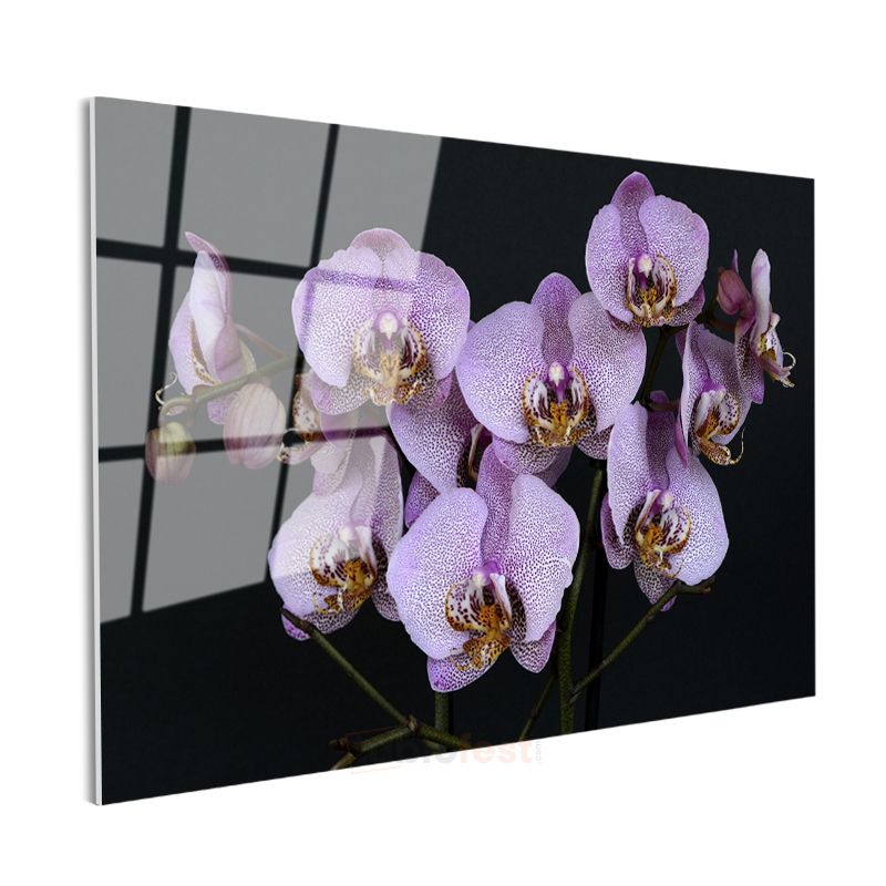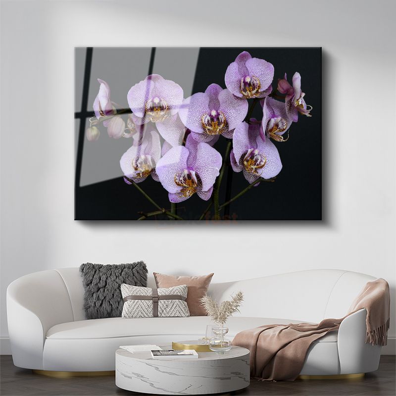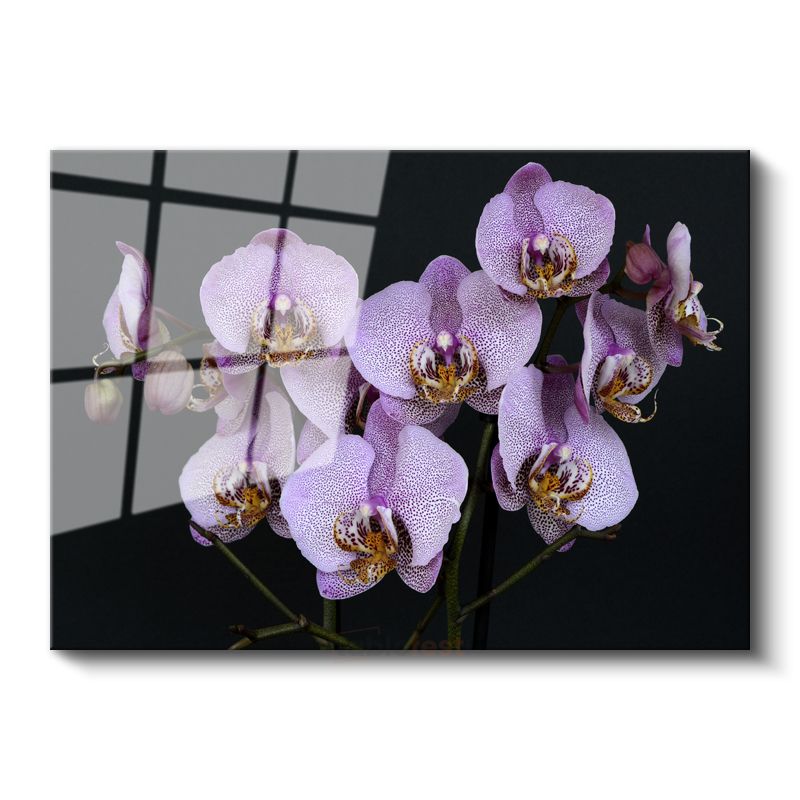 Mor Orkide - Benekli Egzotik Çiçek Dalı Cam Tablo