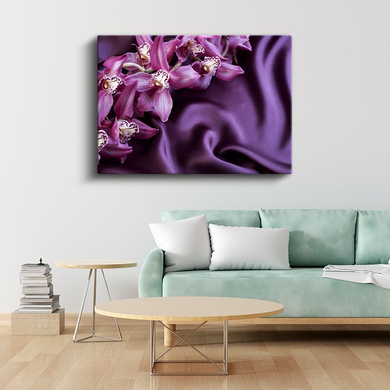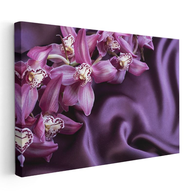Mor Orkideler - İpek Kumaş Üzerinde Lüks Tasarım Kanvas Tablo