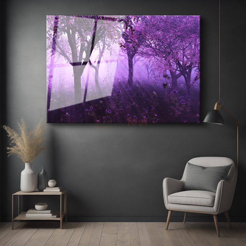 Mor Orman - Masalsı Doğa Güzelliği Cam Tablo