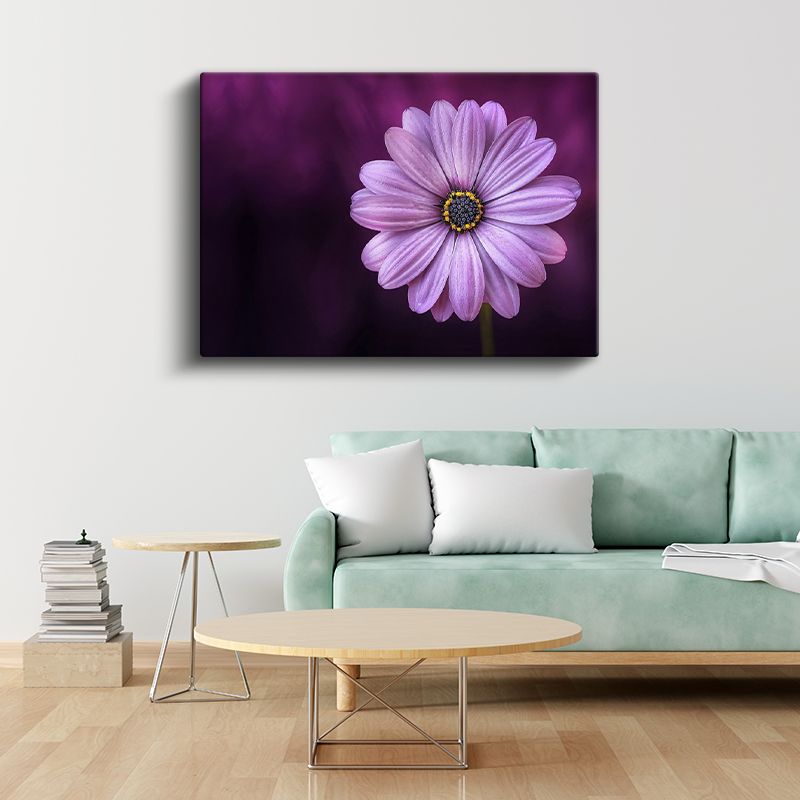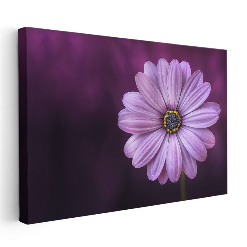 Mor Papatya - Dramatik Fonda Zarif Çiçek Portresi Kanvas Tablo